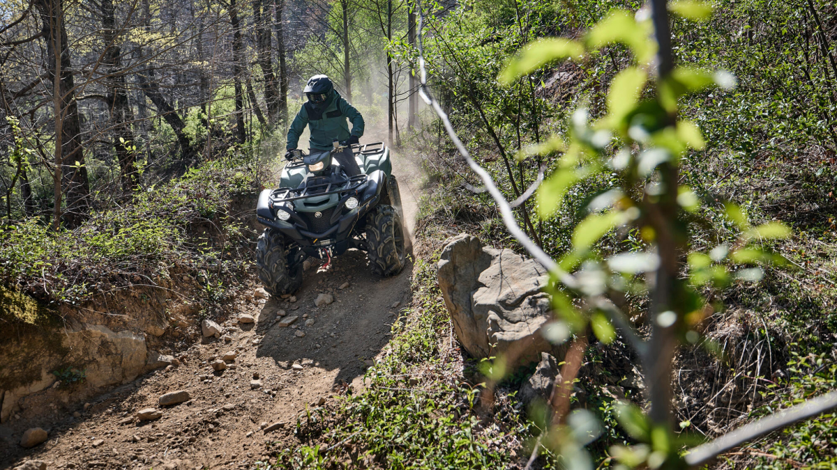 Yamaha Ultramatic®-käigukast valib automaatselt optimaalse jõukäigu igat tüüpi maastikule, samas gaasihoova vabastamisel toimub mootoriga pidurdamine, see annab tohutu enesekindluse allamäge laskumisel ja On-Command®-veosüsteem võimaldab teil sujuvalt vahetada 2WD, 4WD vahel ja Diff Lock-i ühe nupuvajutusega.