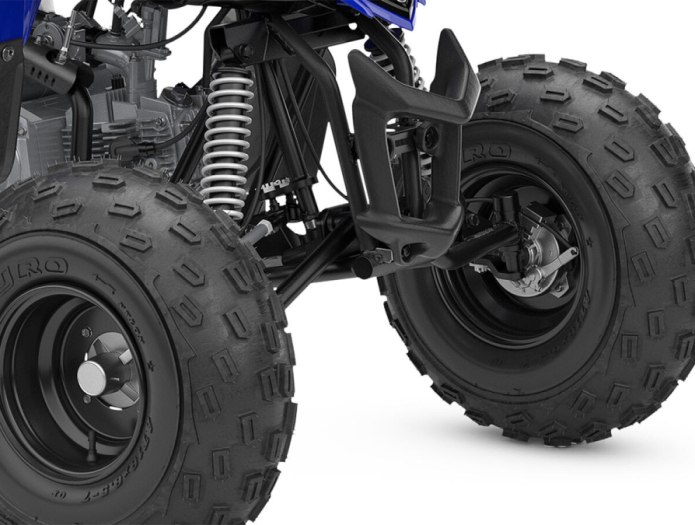 Pika käiguga vedrustus aitab hoida rehve maapinnaga kontaktis isegi lainelisel maastikul. Sõltumatu esivedrustus tähendab, et ühe esiratta liikumist teise oma ei mõjuta. See parandab juhitavust, võimaldades YFM110R-l konarlikul maastikul suurendada mugavust ja kontrolli.