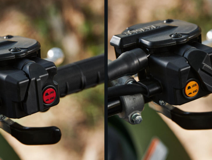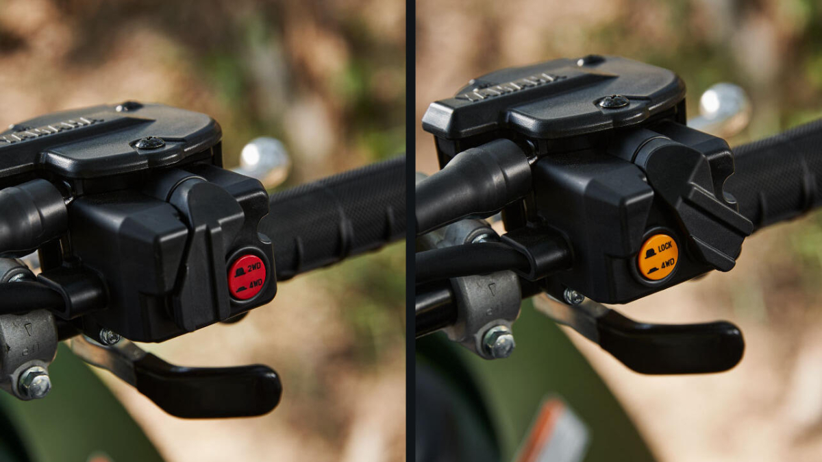 Nutikas On-Command® ajamisüsteemil on mugav nupust juhtimine, see võimaldab sujuvalt ja hetkega lülituda 2WD-lt 4WD-le ja tagasi. Parempoolsel juhtraual asuvale nupule vajutades saate valida 2WD, 4WD või 4WD koos diferentsilukuga, et optimeerida Grizzly jõudlust muutuvates maastiku- ja ilmastikutingimustes.